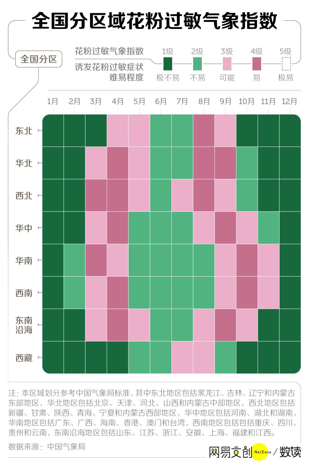 东北和华南地区的花粉浓度稍低,但也维持着可以诱发花粉过敏的 3 级,而西藏由于特殊的地理条件直到七八月才会达到 3 级 [1] 。