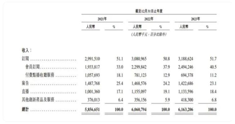 根据招股说明书,喜马拉雅的营收来源,付费订阅、广告、直播以及其他创新产品及服务是四大支柱,2023年收入分别为31.89亿元、14.23亿元、11.3亿元和4.18亿元,营收占比分别为51.7%、23.1%、18.4%、6.8%。