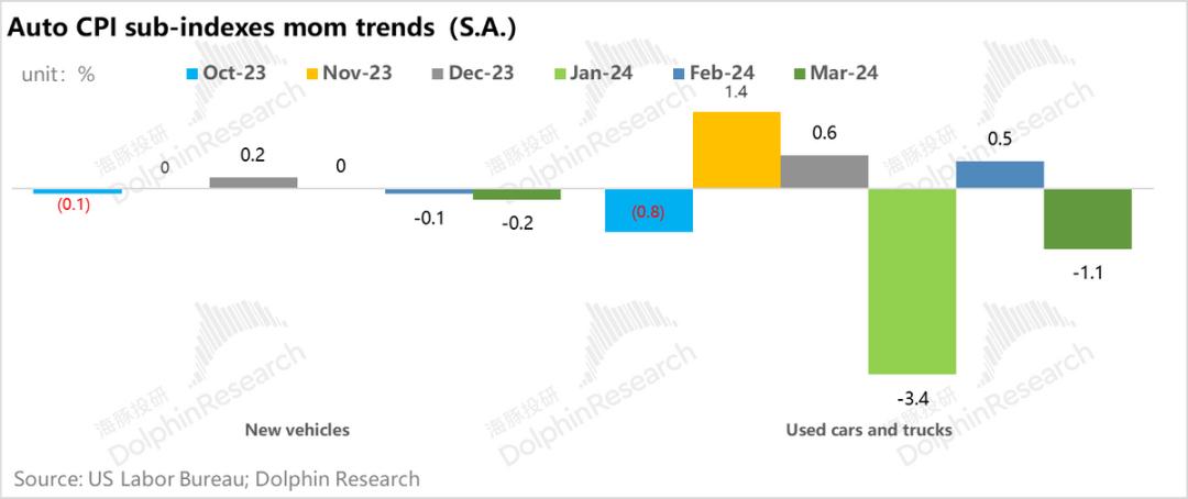 a. 核心服务商品:在新车和二手车物价环比下跌的推动下,核心商品环比是0.2%的收缩,高息压制者商品消费中最大的权重类目——汽车,导致核心商品还在通缩趋势中;