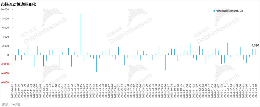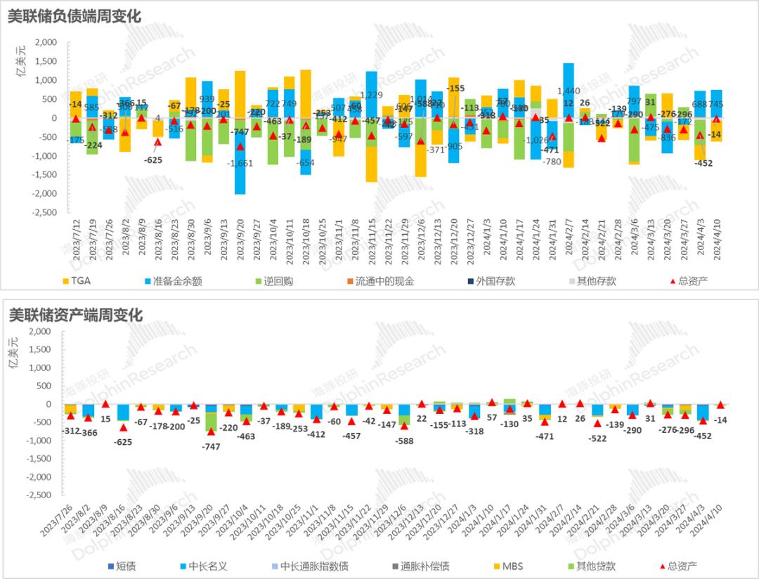 而宽松的源头,主要是上周美联储资产端没有国债抛售,小幅萎缩主要是因BTFP余额缩量,整体资产端的收缩几乎可以忽略。