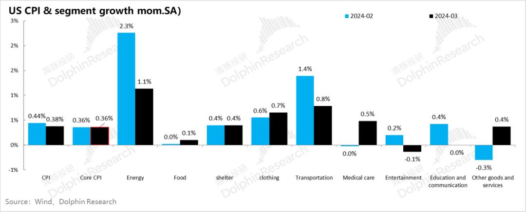 b. 核心服务:三月拉丝的通胀主要是因核心服务,边际变强的主要是剔住房的核心服务,再细看是医疗服务中的医院相关服务,以及交通服务中的机动车保险与维修。
