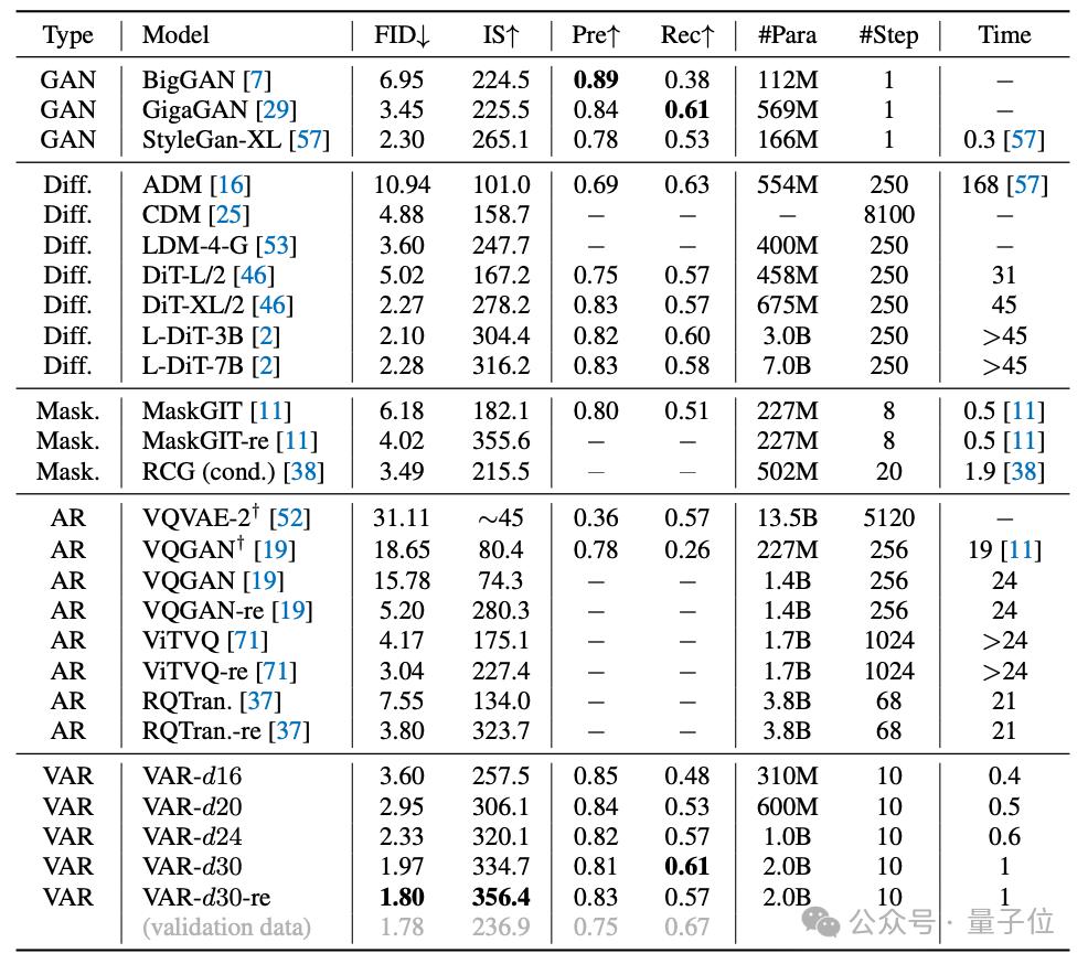 从实验结果来看,在图像生成质量、推理速度、数据效率和可扩展性等方面,VAR都超过了DiT。