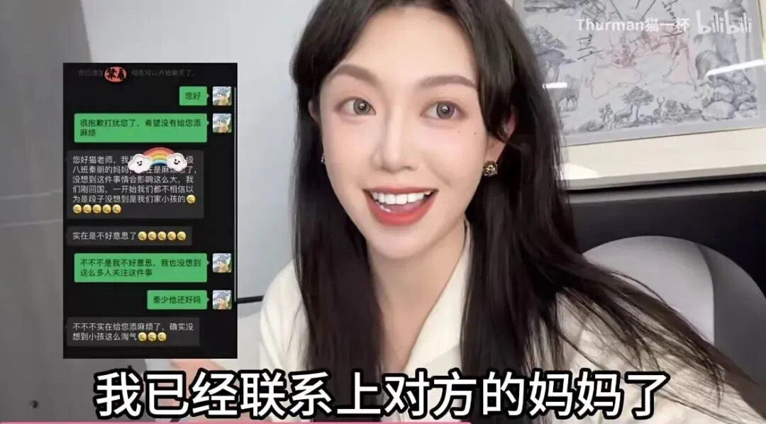眼见事情愈演愈烈,2月19日,猫一杯又发布一条视频,并晒出相关聊天记录截图,声称自己已经联系上对方的妈妈,对方不愿意出镜,事情到这里也算圆满结束。