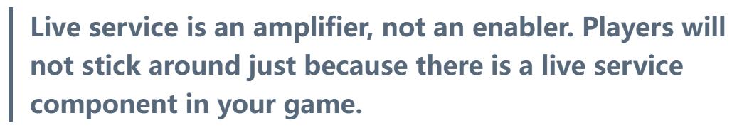 游戏行业分析师Ivan Marchand也指出,GaaS本身没有问题,只是以往个别厂商在GaaS时陷入了误区:并非因为游戏是GaaS、有内购,玩家就会长期消费了;而是因为GaaS能让游戏持续好玩,玩家才会长期消费。