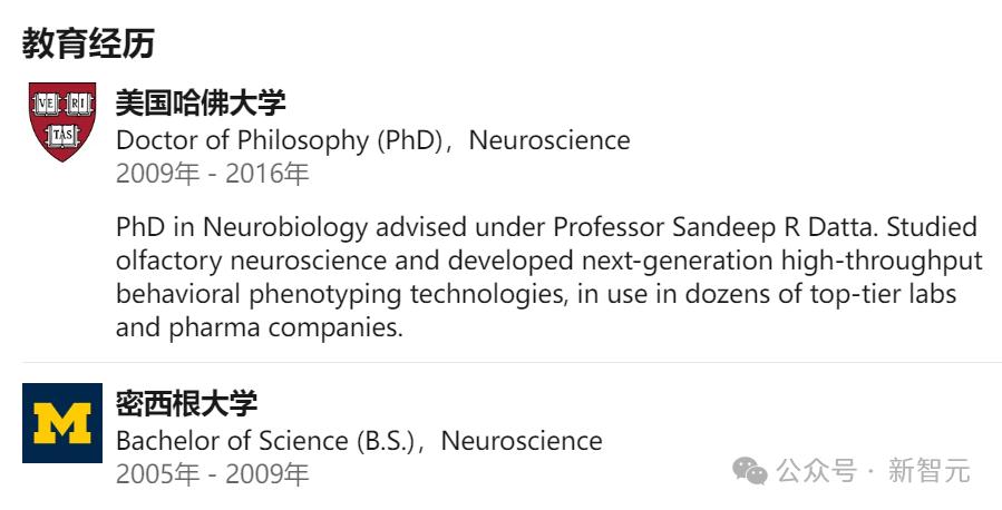 Alex Wiltschko毕业于哈佛大学,获得了神经科学博士学位,导师为Sandeep R Datta教授。