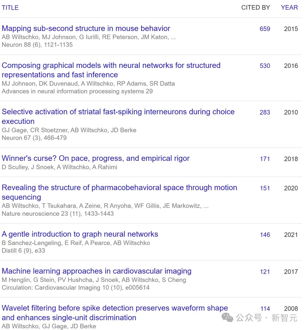 作为业内的大佬,Alex Wiltschko也发表了许多具有影响力的文章。