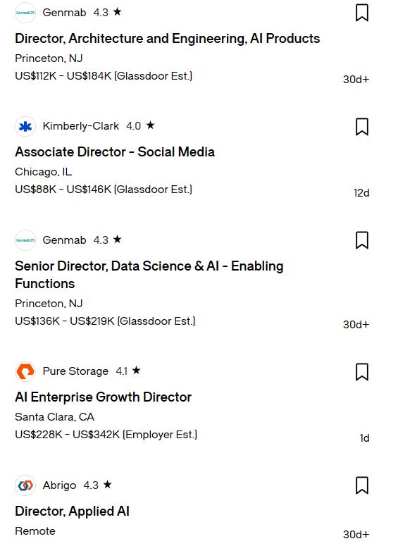 从美国招聘网站Glassdoor以AI为关键词进行检索,可以看见,大部分AI工作的年薪都在15万美元左右。