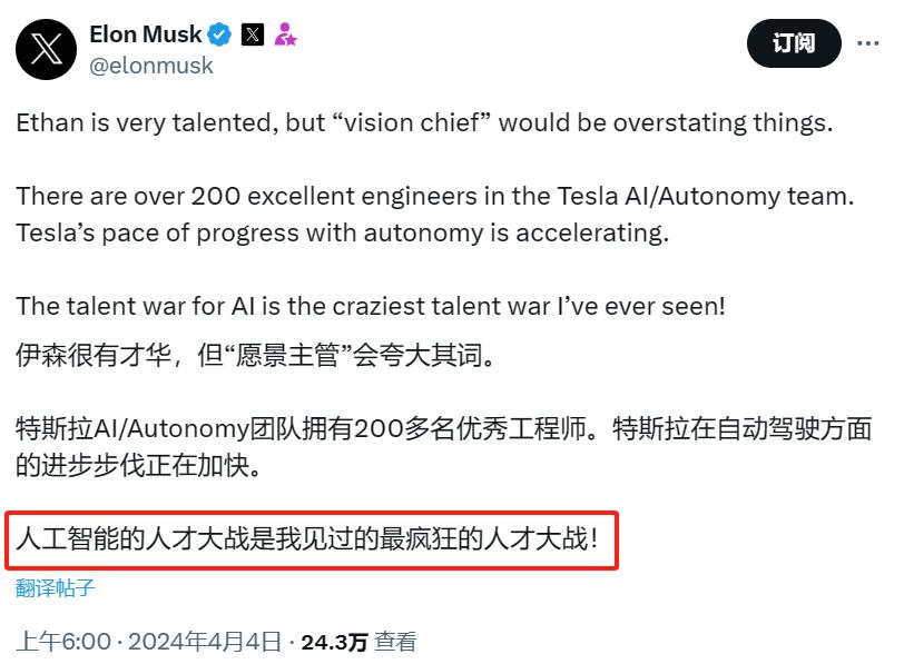 另一方面,马斯克旗下的xAI,已经到了跟自家老大哥特斯拉“抢人”的地步。用马斯克自己的话说,如果xAI不提供offer,人就被OpenAI挖走了。
