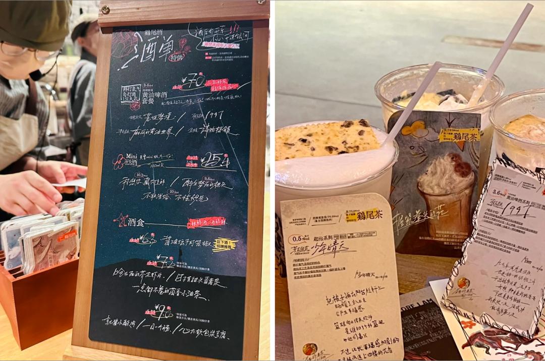 “昼夜诗酒茶 · 艺文小酒馆”很多地方都表现出浓郁的“茶颜味”,用茶颜做茶饮的思路做酒饮。