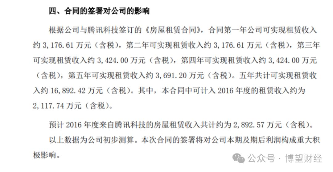 其二,“痛失”大租客腾讯,房屋租赁收入骤减,净利润受严重冲击