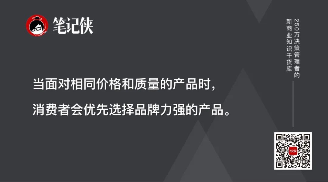 当面对相同价格和质量的产品时,消费者会优先选择品牌力强的产品。