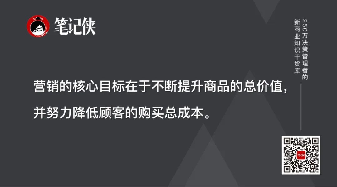 营销的核心目标在于不断提升商品的总价值,并努力降低顾客的购买总成本。