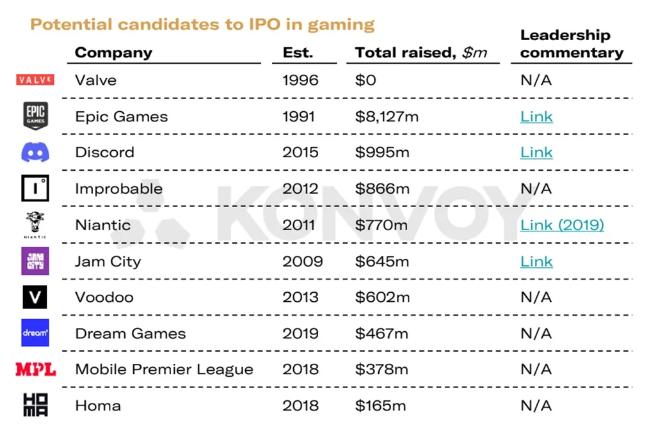 (Konvoy Ventures认为在游戏行业,图中的这些公司都有可能寻求上市)