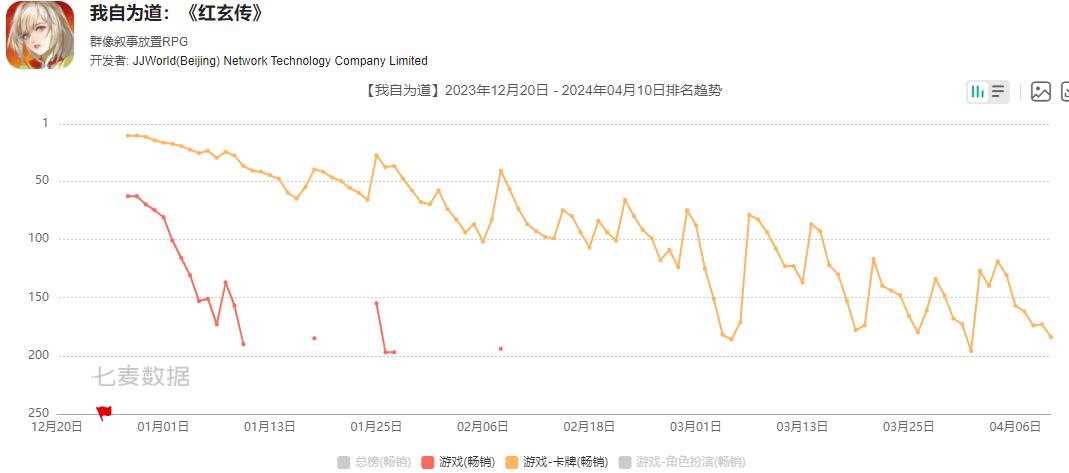 《我自为道》在2021年5月立项,次年制作人在采访中透露团队规模(研发+发行)有近百人。这款游戏在2023年12月上线,最初排进iOS畅销榜TOP70,至今排名仍在逐渐下滑。