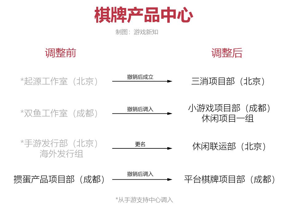 棋牌产品中心从手游支持中心中吸纳了部分团队,负责的也不仅仅是棋牌游戏。轻度类型的产品也放在了棋牌产品中心之下。