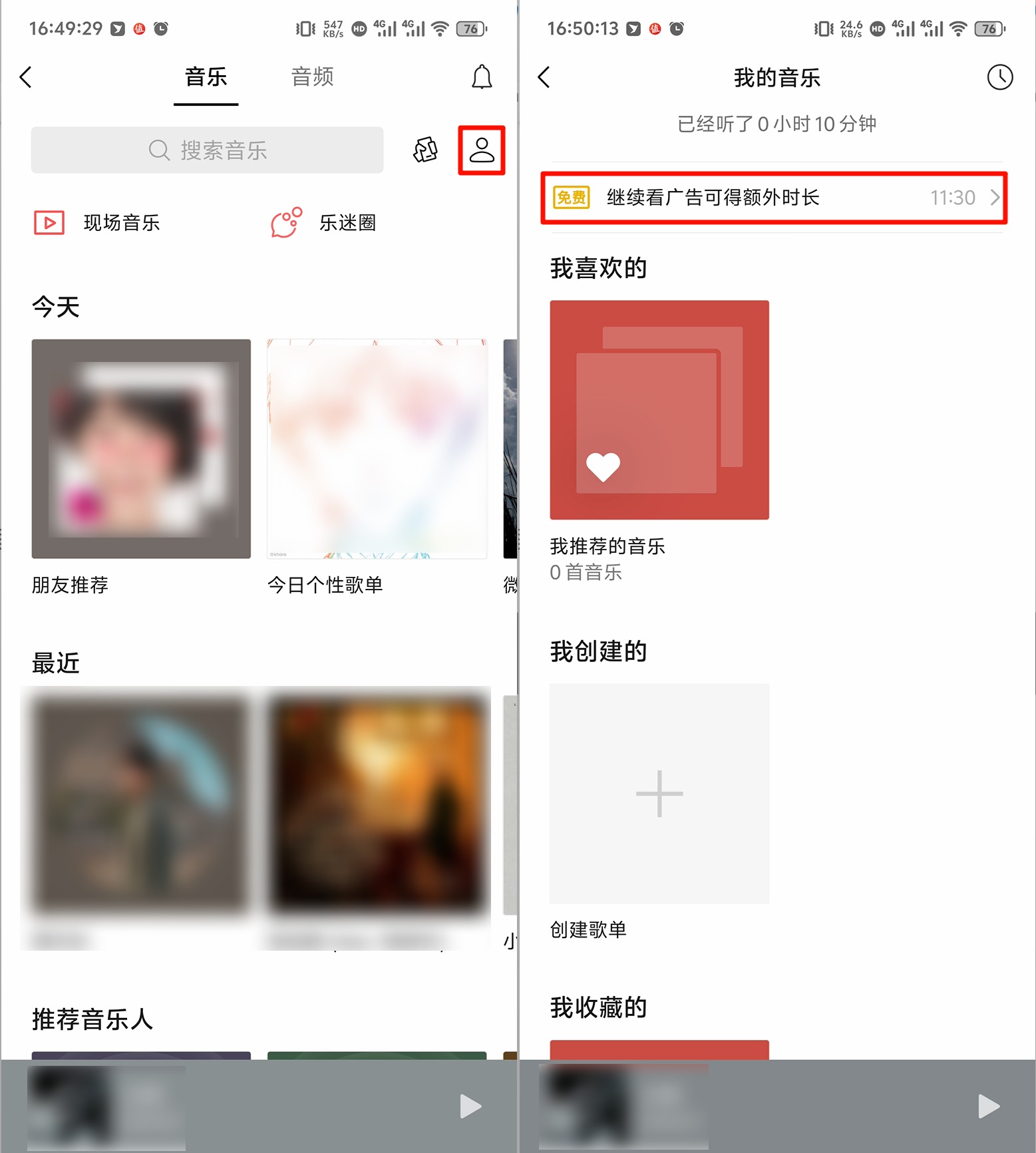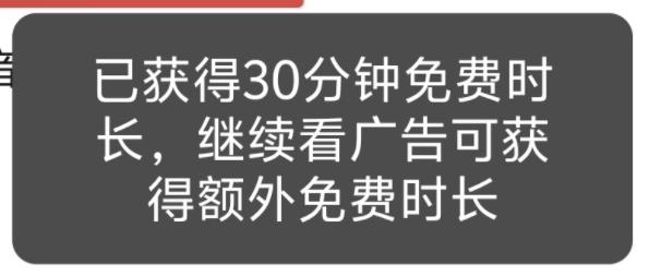 呐,观看广告就可以免费畅听30分钟音乐,还可以继续看广告获得额外免费时长。