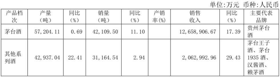 产销量方面,飞天茅台酒和系列酒两大类产品产销量均实现了正增长。其中,茅台酒基酒产量5.72万吨,同比增长0.69%,销量为4.21万吨,同比增长11.1%;其他系列酒产量4.29万吨,同比增长22.41%,销量3.11万吨,同比增长2.94%。在白酒销量萎缩的大背景下,贵州茅台动销情况要远好于行业平均水平。
