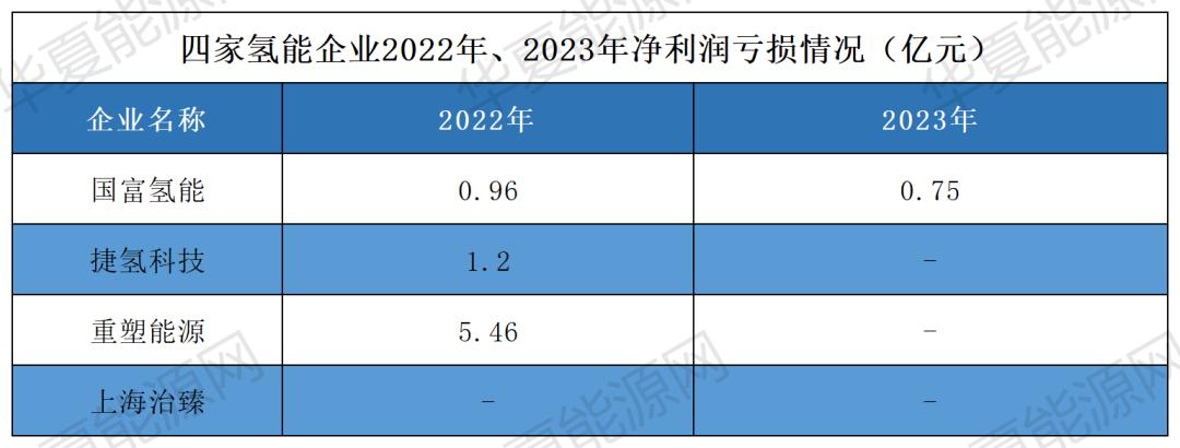 从已披露的业绩来看,国富氢能、捷氢科技、重塑能源、上海治臻均存在亏损情况。