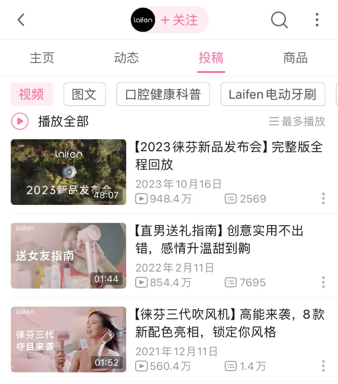 从2021年底到2022年初,徕芬在B站有多条广告视频获得上百万次播放。2022年,徕芬搭建起50人的内容团队,向B站、抖音、知乎、小红书等平台输出。叶洪新曾有这样一个表述,「我们的内容创作者就是销售员」。