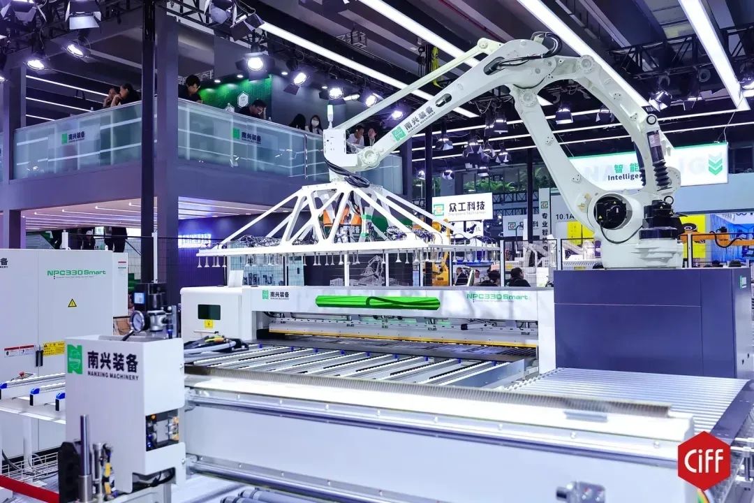南兴装备:携智能电脑裁板锯、智能封边机、激光封边机、智能工作站、自动分拣、裁纸、包装等产品亮相。