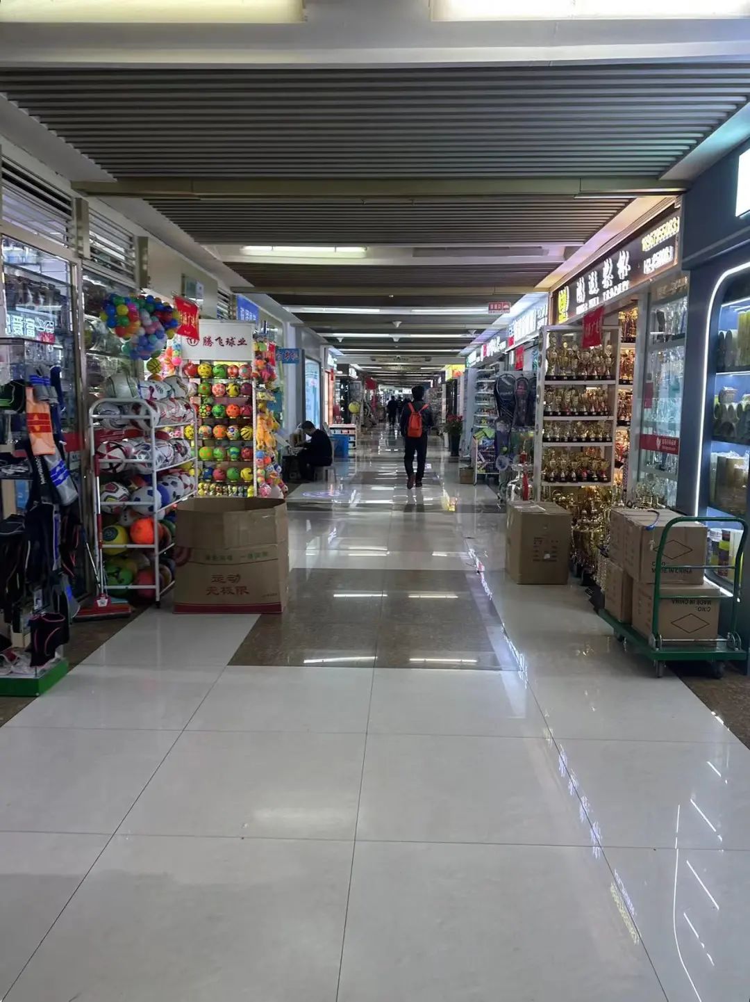 义乌国际商贸城体育用品区,即便细心寻找也很难发现所谓的“奥运氛围”。(图源:时代周报记者 刘沐轩)