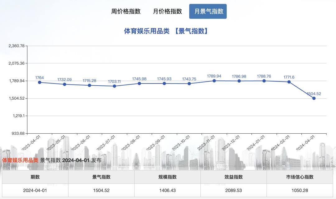 近一年来的义乌体育娱乐用品的小商品指数。(图源:义乌小商品指数)