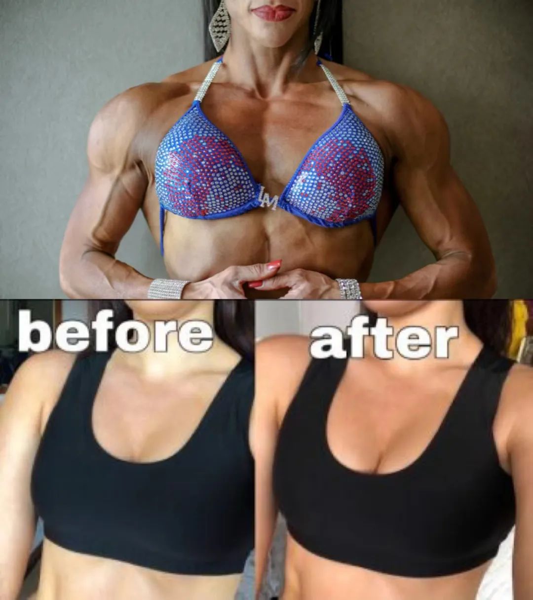 上 : 部分女性认为进行胸部训练后的效果 下 : 女性实际进行胸部训练后的效果