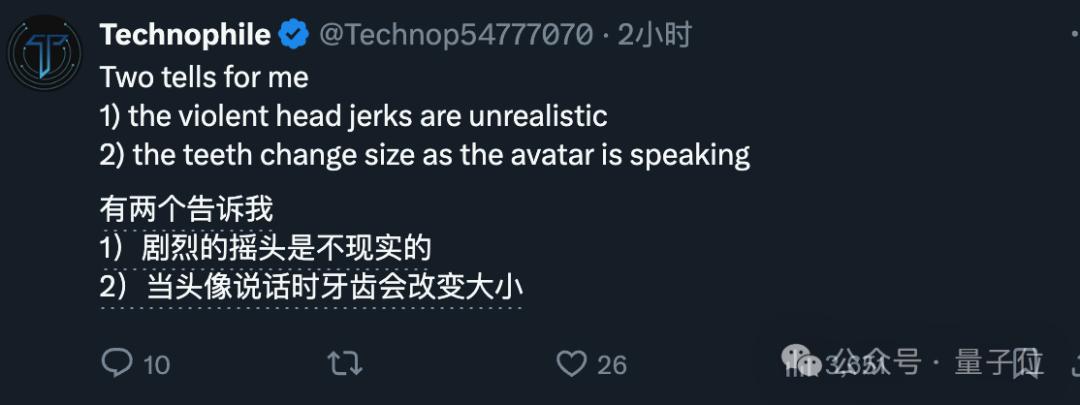 不上专业评估手段,肉眼看的话,仔细挑刺或直接对比真人视频,确实也能发现目前VASA-1演示视频中的一些瑕疵。