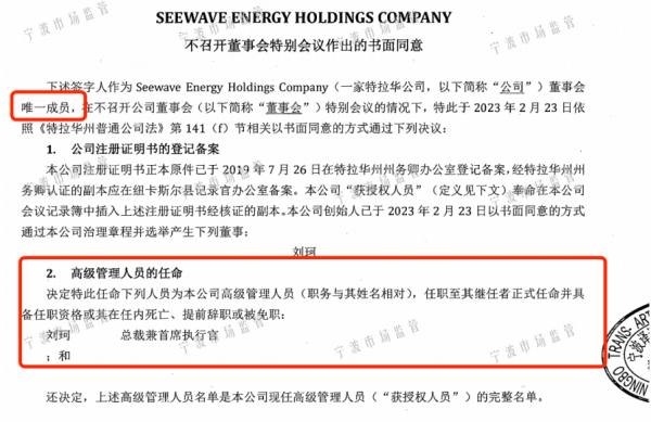 同时,这份Seewave公司的工商资料称,刘珂为Seewave公司的唯一董事、总裁兼首席执行官及获授权人。