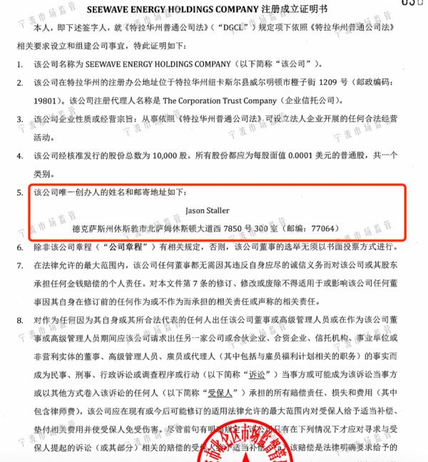 由于美国当地允许企业不披露股东信息,因此,吴瑞无从得知Seewave公司的股东信息。据其从宁波市场监督管理局获得工商资料,Seewave公司的唯一创办人是一位自然人,Jason Staller。