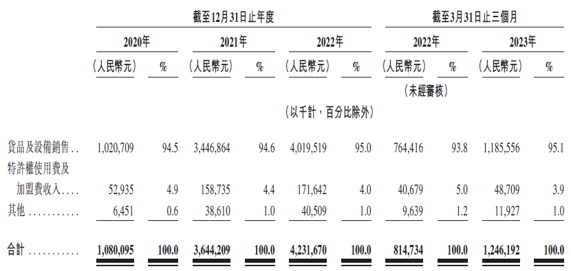 3、加盟店数量占比99%以上,供应链营收占比94%以上。
