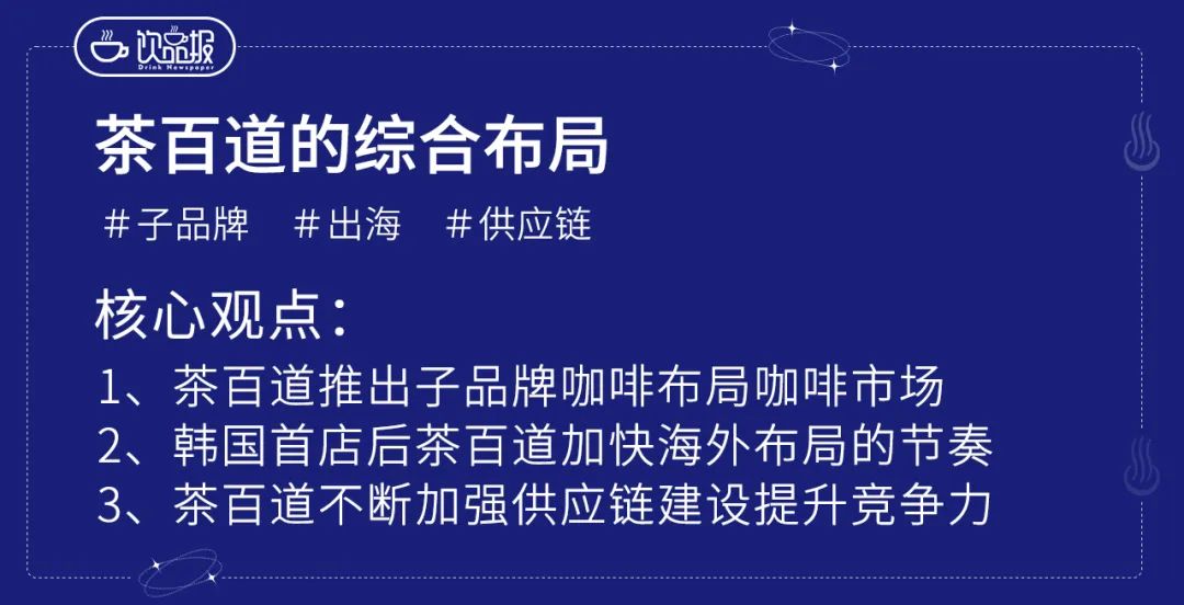 一边拓展茶饮版图,将目光从国内延伸到海外,一边开拓咖啡新事业,将饮品业态延伸到咖啡领域,茶百道在积极寻找“第二曲线”。