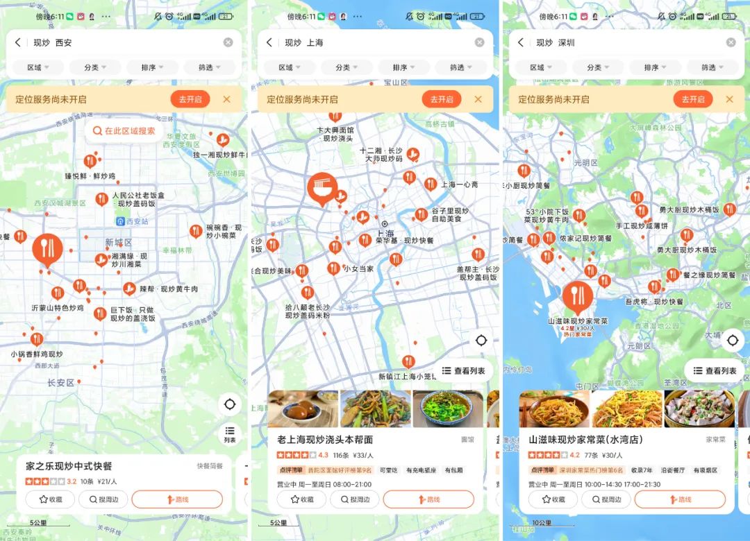 不仅西安,深圳、上海、北京等城市也纷纷涌现出众多主打“现炒”模式的餐厅。这些餐厅提供现炒黄牛肉、现炒盖浇饭、现炒简餐、现炒煲仔饭、现炒浇头,甚至还有现炒煎饼等多样化的现炒美食。