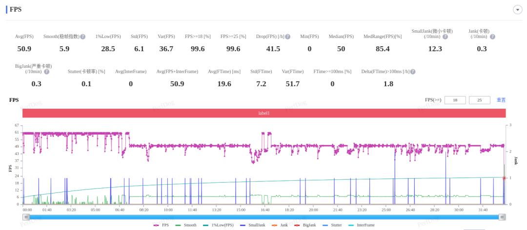 同样的,《 原神 》也是插帧的:30 分钟璃月港全高画质 60 帧一条直线,实测画面分辨率 680p 。