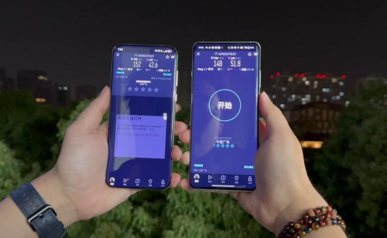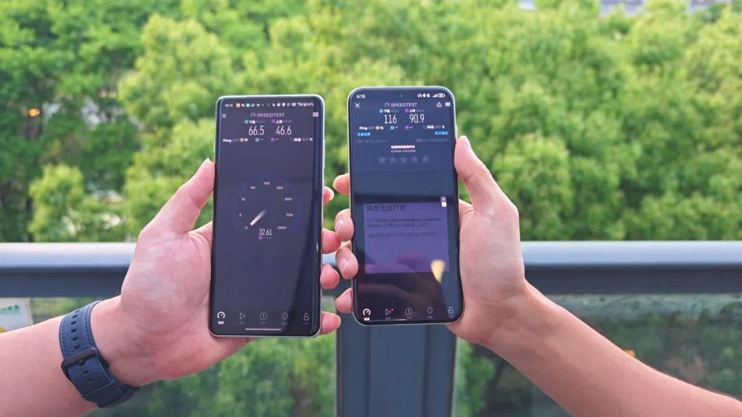 具体情况,在广电手机卡( 不限速、和中国移动共用基站 )的环境下,华子的下行速度有 152 Mbps ,而 8Gen3 手机的下行有 148 Mbps 。