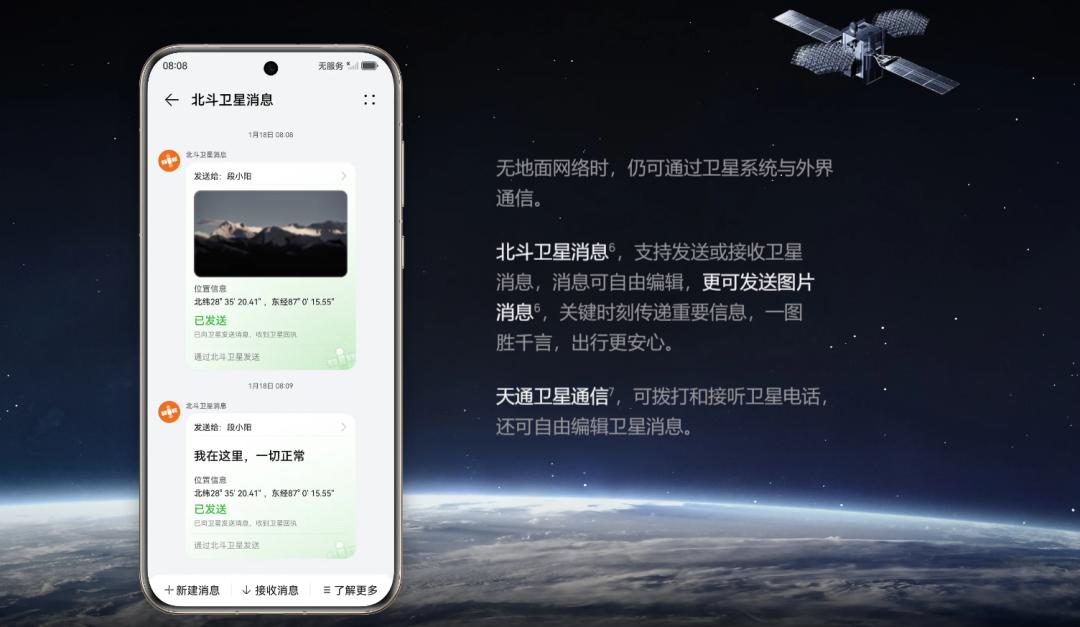 这次北斗卫星消息还能发图了,华为这次做了个算法,能把图片压缩到几 KB 之后,和经纬度信息一起传出去,拿到手机的小伙伴可以试试。