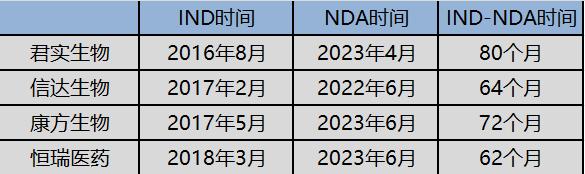 例如研发PCSK9单抗,恒瑞医药从IND(新药临床研究申请)到NDA(注册上市申报)就仅用了62个月,而君实生物、信达生物和康方生物虽然进入临床早于恒瑞医药,但却用了更长的时间周期。