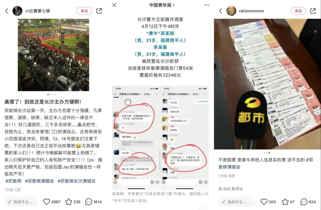 可如果遇到比较严格的地方,就会损失惨重。比如让炒房团折戟的长沙市,近期也让邓紫棋粉丝见识到了落实强实名的“铁面无私”。4月的邓紫棋长沙演唱会检票关卡,不允许任何手握“错票”的观众进场,甚至出动警方抓了两个卖“错票”并煽动群众冲安检的黄牛,被网友戏称为打响“杀牛”第一枪。