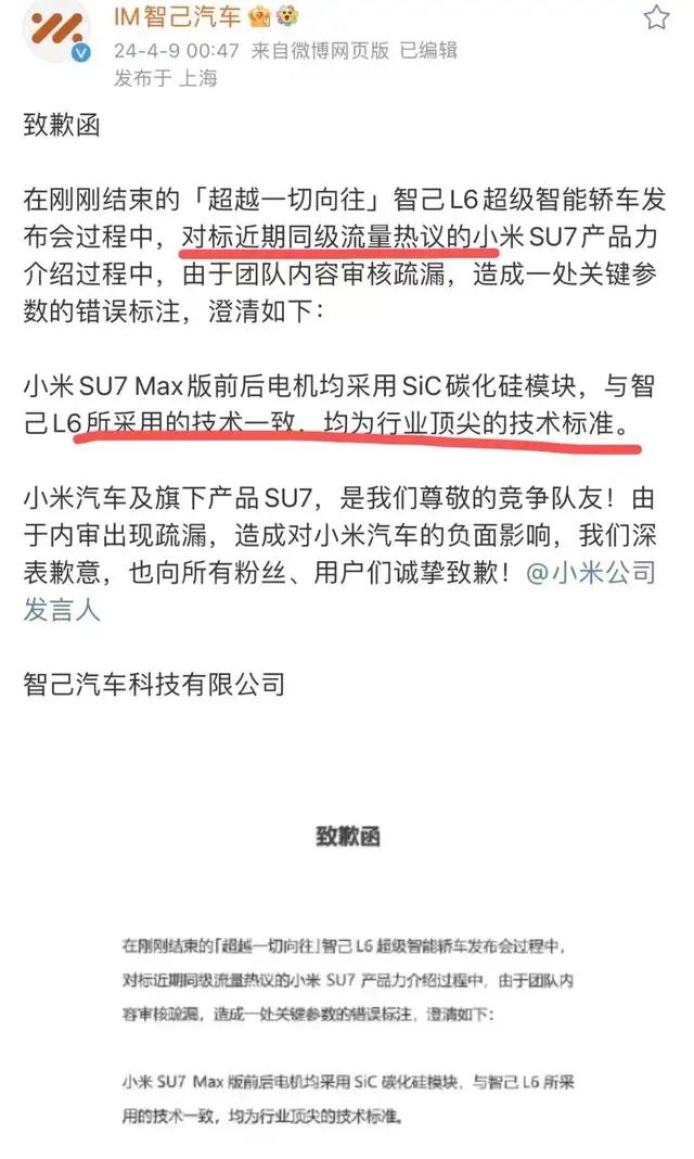 在智己L6的发布会上,智己汽车CEO刘涛本想把“雷氏对比法”活学活用,没想到却标错了小米汽车的参数,直接惹得对方连发三条问责微博,自己品牌还得灰溜溜的公开致歉。