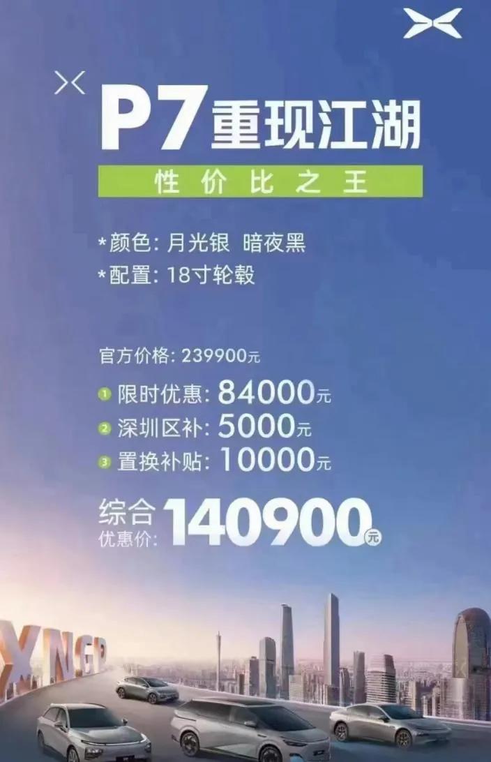 4月15日,一张“小鹏P7重现江湖”的海报在多方媒体平台流传,海报内容显示,小鹏P7的一款配置原价23.99万元版本,现综合优惠价为14.09万元。