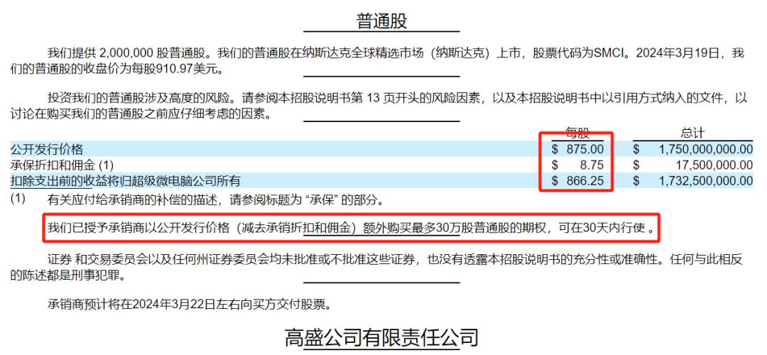 在一个月之前,超微向机构发行一笔规模17.5亿的新股,发行价875美元/股,同时还授予承销商以这个发行价格(减去承销折扣和佣金)额外购买最多30万股普通股的期权,可在30天内行使。