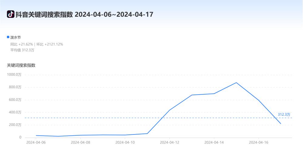 细心的网友不难发现,云南文旅与抖音一直保持着紧密的合作,社交平台的热点时常出现云南的身影。“有风的地方”、“有一种生活叫云南”等等话题,都曾经在各大社交平台尤其是抖音冲上热榜。这次的泼水节有关话题,更是占据好一段时间的热点榜单。下图是抖音关键词“泼水节”的近期搜索指数,其热度可见一斑,图片来源于巨量算数。