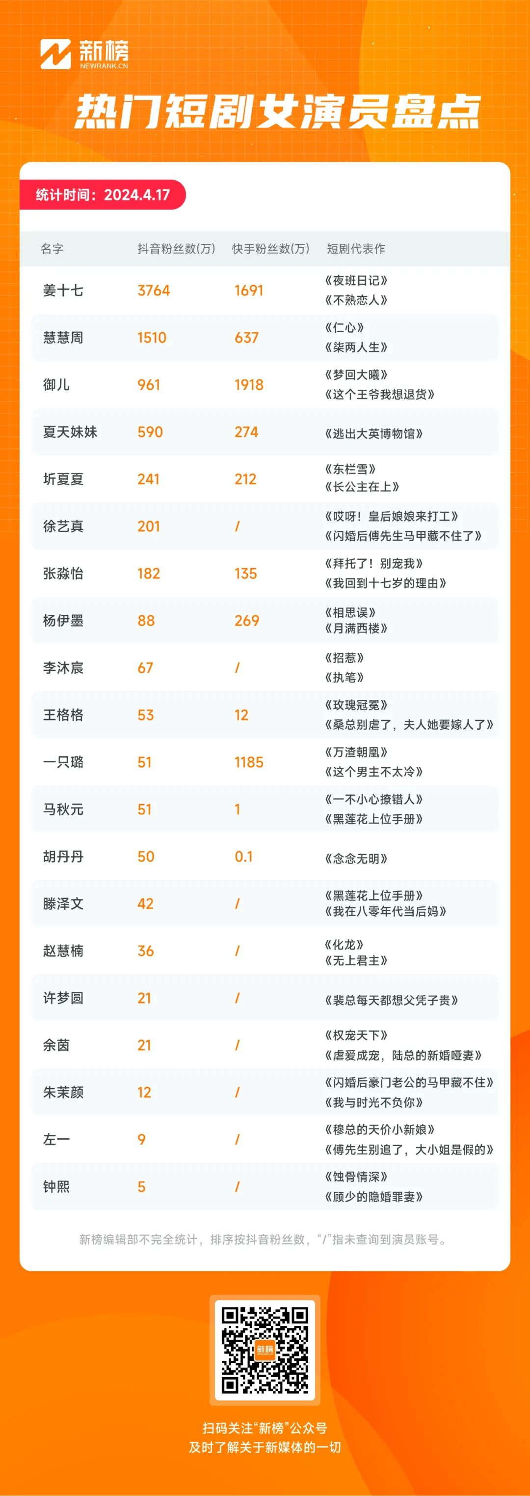 近日,新榜编辑部结合短剧演员的作品影响力和社交影响力,统计了部分热门短剧中的男女演员,尝试回答上述问题。