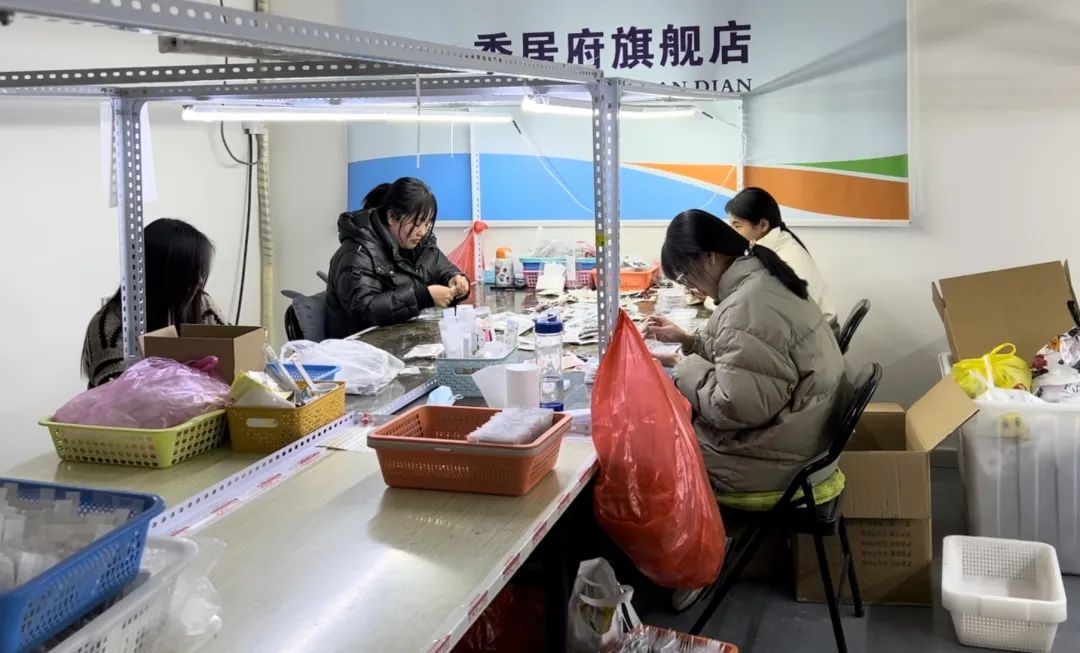 发货的仓库里,同样是一屋子女性,比例超过9成。但几乎和东海“穿戴甲一条街”上的所有商家一样,主理人是男性。