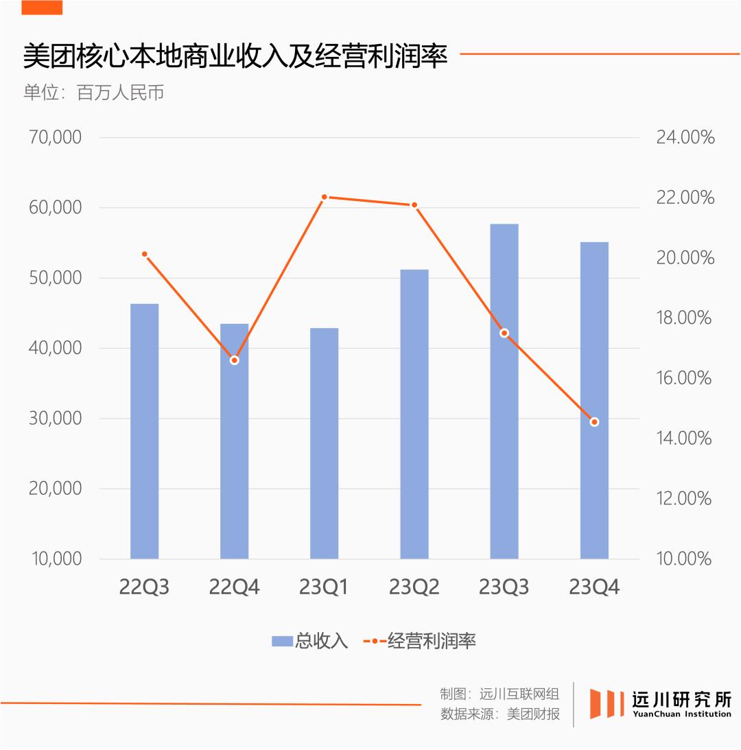 反击的代价在所难免,体现在2023年财报上,核心本地商业营收维持双位数增长的同时,经营利润率却在走低。