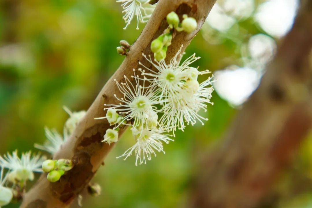 嘉宝果(学名:Plinia cauliflora)其实又名拟爱神木、木葡萄、树葡萄,是桃金娘科树番樱属的常绿灌木,可以长到10~12米高。嘉宝果树全年枝叶浓绿茂盛,一年四季都可以开花、结果。每到开花的时候,嘉宝果树的枝头都会出现淡黄色的小花,而花落之后,就会出现小果实。