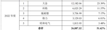 2022年公司前五大客户占比