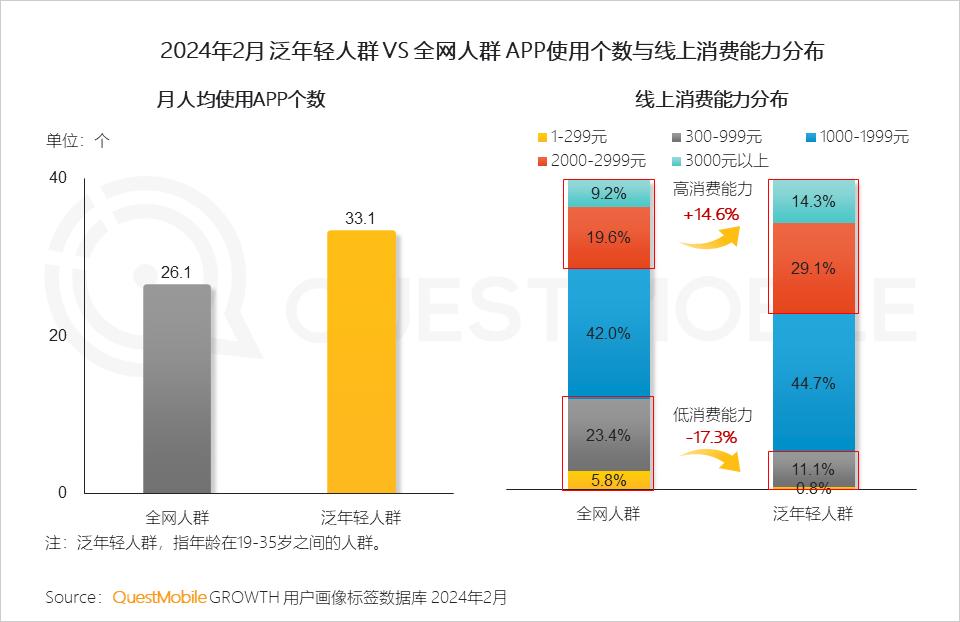 1.2 泛年轻人群线上使用行为更深,消费能力更高