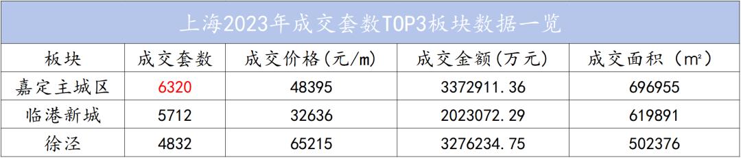 但没想到的是,嘉定主城区在2023年上海各个板块成交量排行榜中,反而是 Top1。