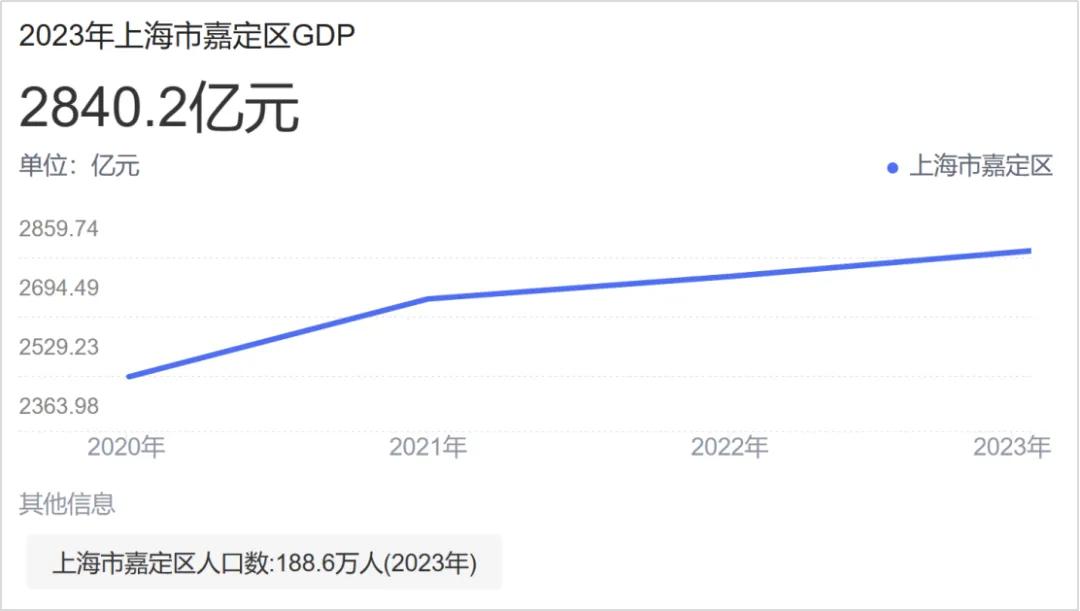 2023年,嘉定一个区的GDP总量达到2840.2亿元,相比2022年的2705亿元,又增长了135亿元 。
